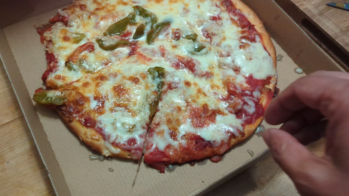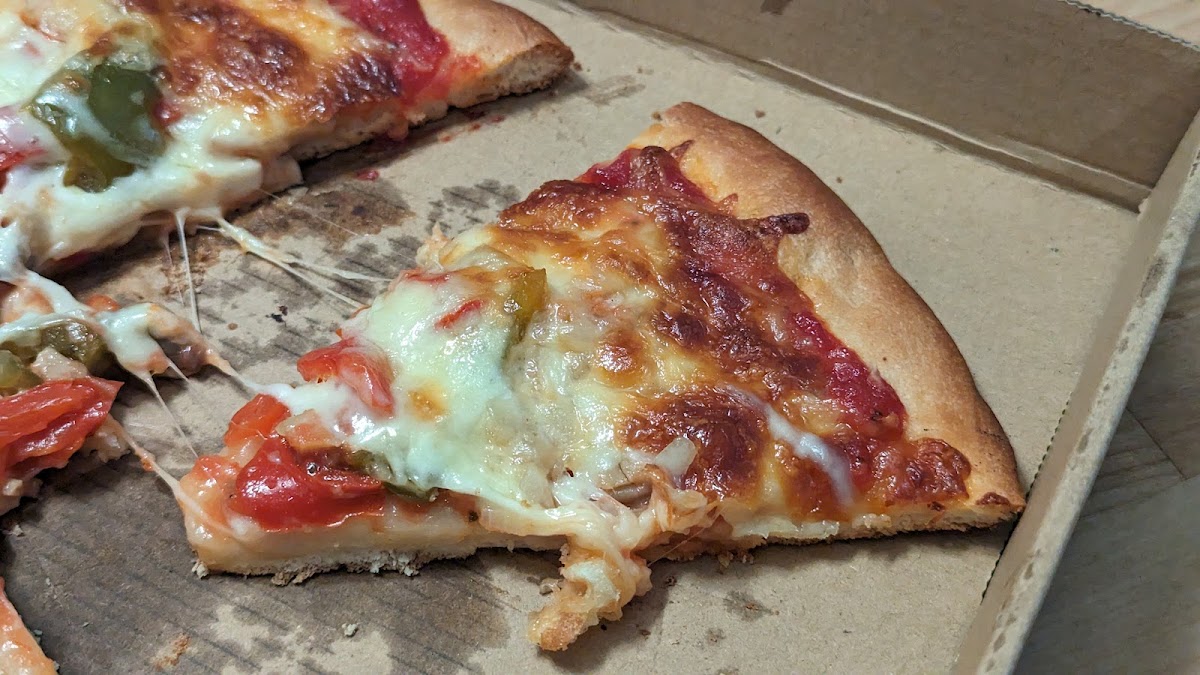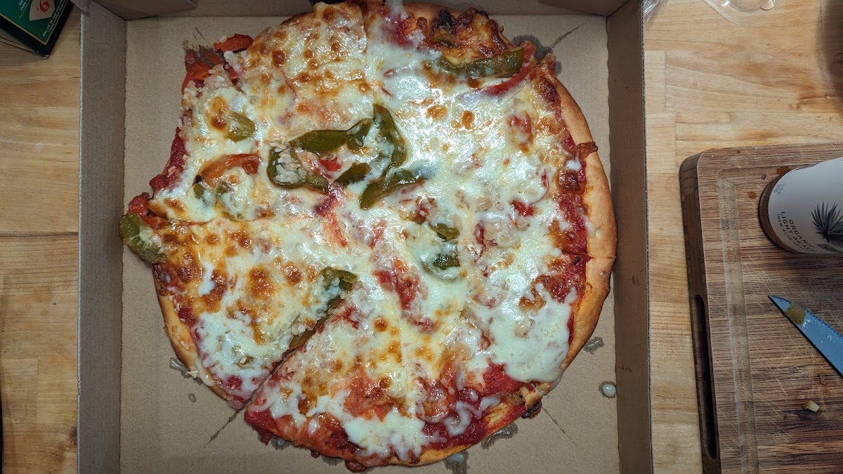 Update 12/3/24: Pizzas are now $8. Still, ridiculously cheap for a whole pie. $7 for a 13 inch tasty pie? Fresh tomatoes in the sauce? Any and all toppings, same price? Ok! Green Pepper 'n Onion . Please and thank you. Sauce is sweet. Pizza is great. Crust is thin, chewy. Sicilian style slices. Price can't be beat. 30 mins from order to pickup. This is my new fav! P.S. Knock. Doorbell's out. Updated 1/19/24 Total Visits: 4 Reccos: Plain, Green Pepper and Onion.